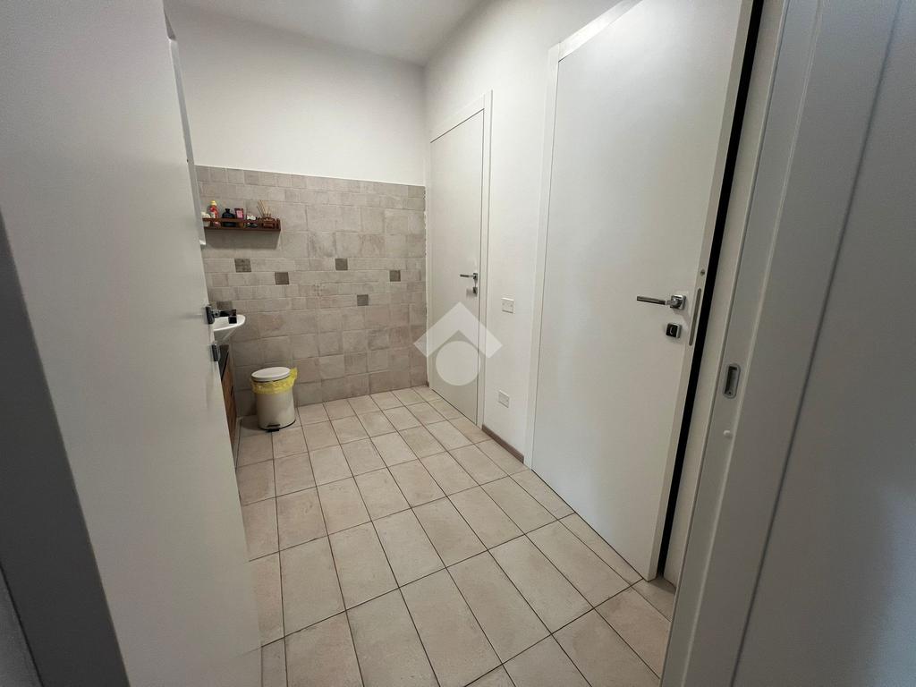 Spazio esterno ad uso comune con un ampio parcheggio pubblico.