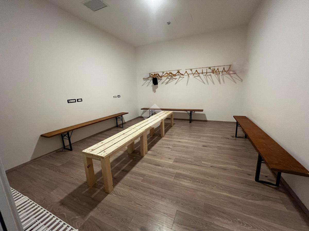 È completo di servizio igienico, spogliatoi e pavimentazione in parquet.